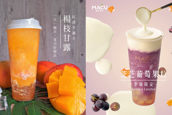 麻古飲品創新多元,推出多樣超越市場概念的新型態飲品,開創Drinking Dessert「飲中甜品」風潮,2019年推出「楊枝甘露」、「芝芝葡萄果粒」等超人氣飲品,高顏值外觀與誠意十足的用料,領先手搖飲業界並造成社群廣大迴響。