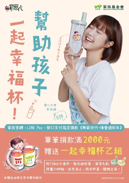 麻古茶坊攜手家扶 由家扶邀請藝人李佳穎擔任《無窮世代》愛心大使 助貧過好年