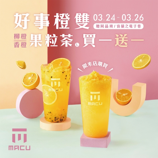 麻古超人氣柳橙飲品「好事橙雙」 幸福滋味限時買1送1!