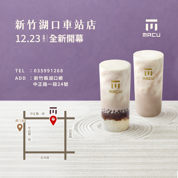 麻古《新竹湖口車站店》12/23(六)開幕 麻古新據點盛大開業,邀您一同品味茶的繽紛! ----- 新竹湖口車站店: 12/23(六)開幕 門市電話:035991268 門市地址:新竹縣湖口鄉中正路一段24號