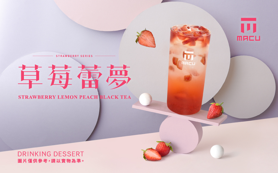 今季最令人期待的夢幻系飲品,無論是午後解渴或是與朋友分享時光,草莓蕾夢都是最佳選擇,只在麻古茶坊期間限定推出,錯過再等一年!